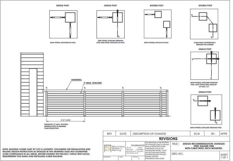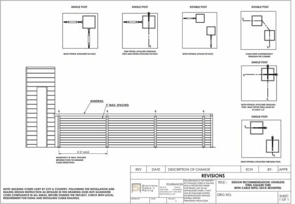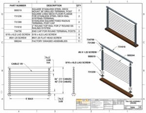 Our St. Croix assemblies include deck mount stainless square posts with post caps and base plates pre-welded to the top and bottom. Low post caps don’t have stems, allowing for a subtler connection between posts and flat stainless or wood top rails.